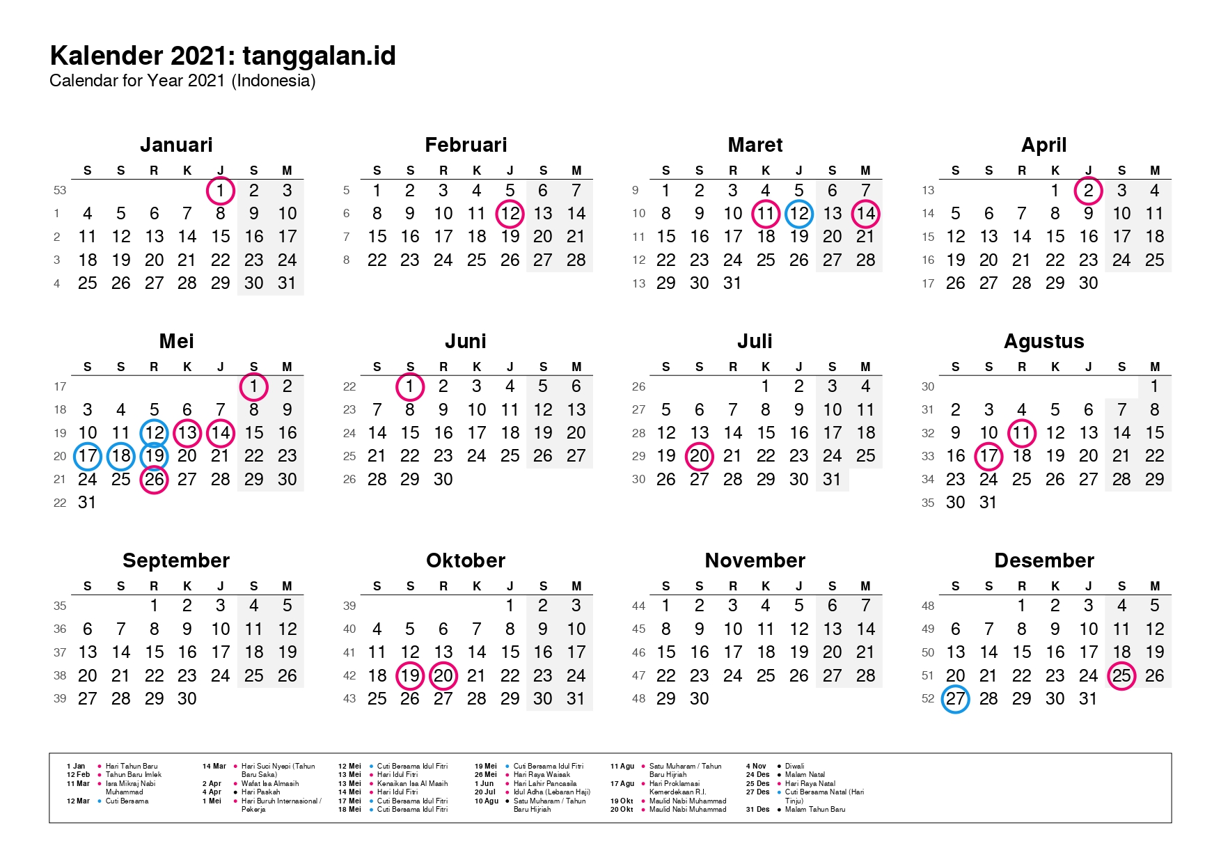 Kalender Indonesia tahun 2021 lengkap dengan hari libur nasional, tanggal merah, dan cuti bersama.