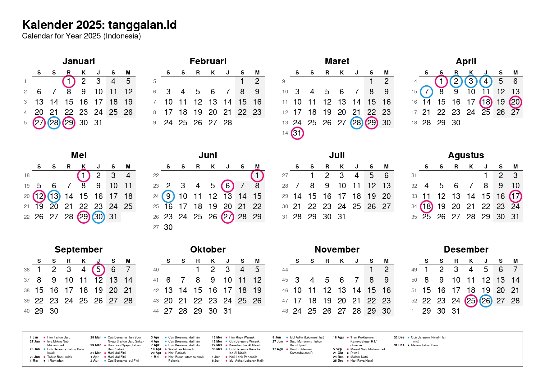 Kalender 2025 berguna untuk banyak kebutuhan, mulai dari melihat hari libur nasional, memantau cuti bersama, hingga merencanakan aktivitas jauh-jauh hari. Anda bisa memanfaatkannya untuk mengatur jadwal kerja, menyusun agenda sekolah, memilih tanggal perjalanan, atau menentukan waktu terbaik untuk mengambil libur.