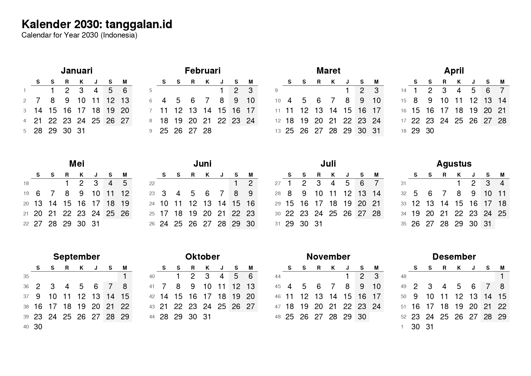 Download Kalender Tahun 2030