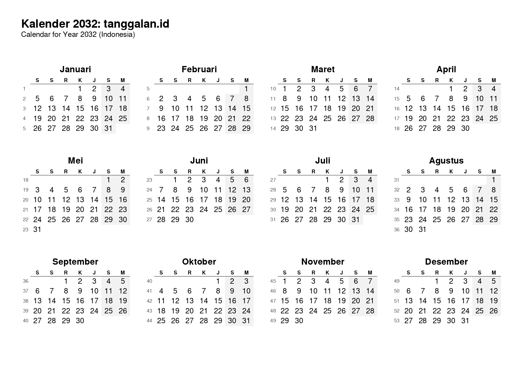 Download Kalender Tahun 2032
