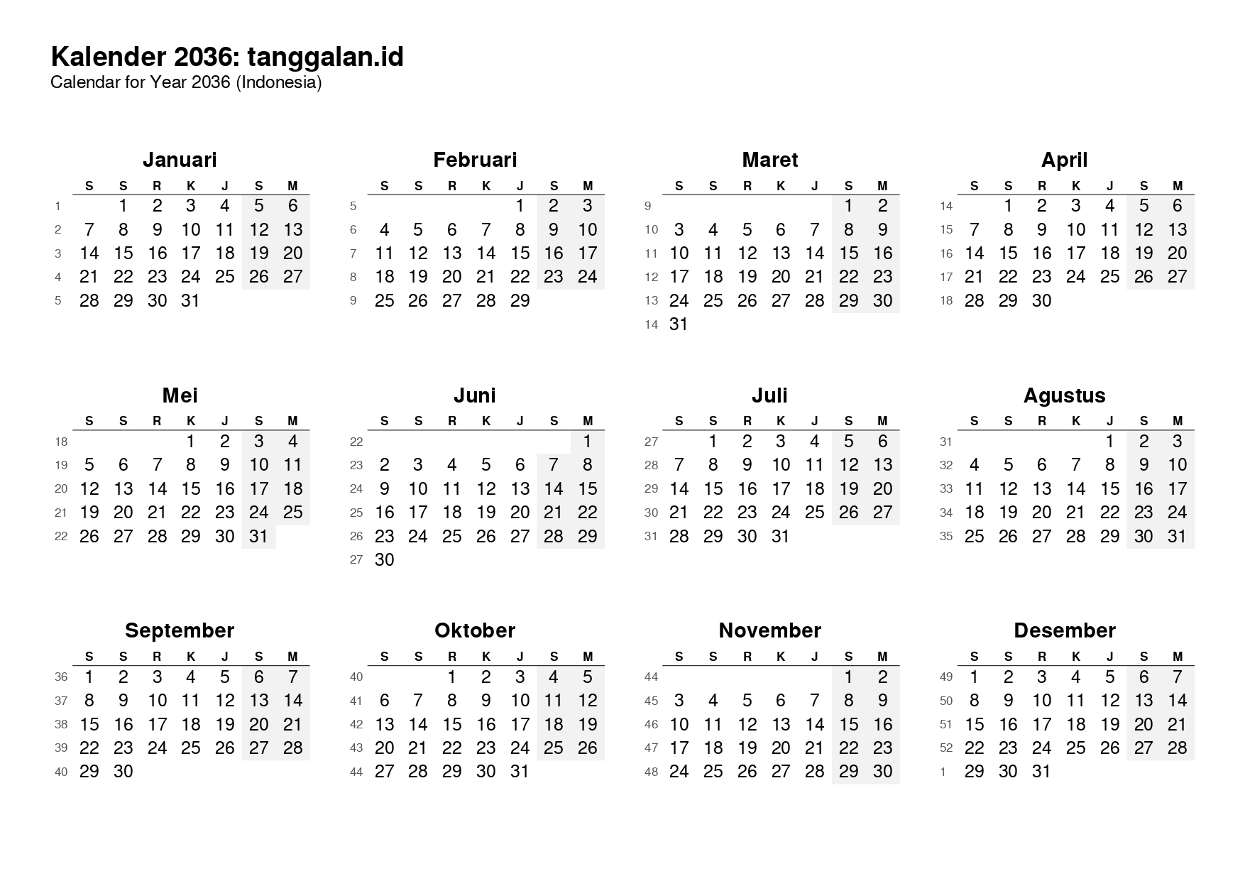 Download Kalender Tahun 2036