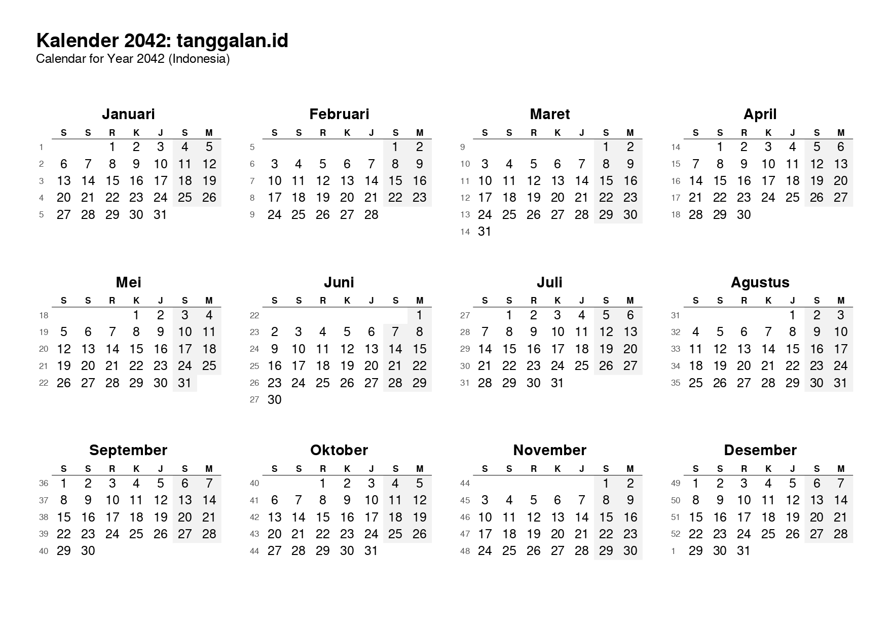 Kalender Indonesia tahun 2042 lengkap dengan hari libur nasional, tanggal merah, dan cuti bersama.