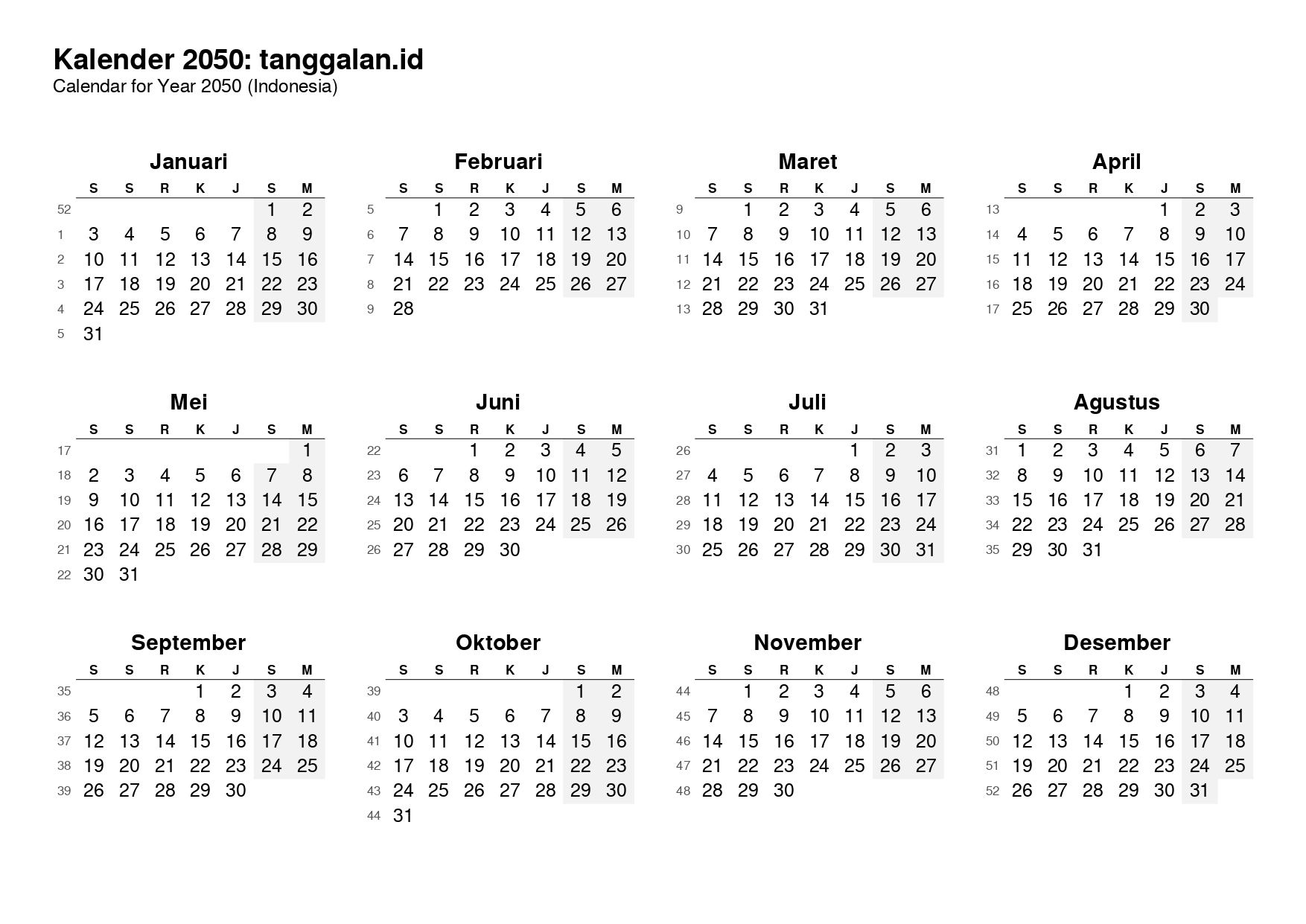 Download Kalender Tahun 2050
