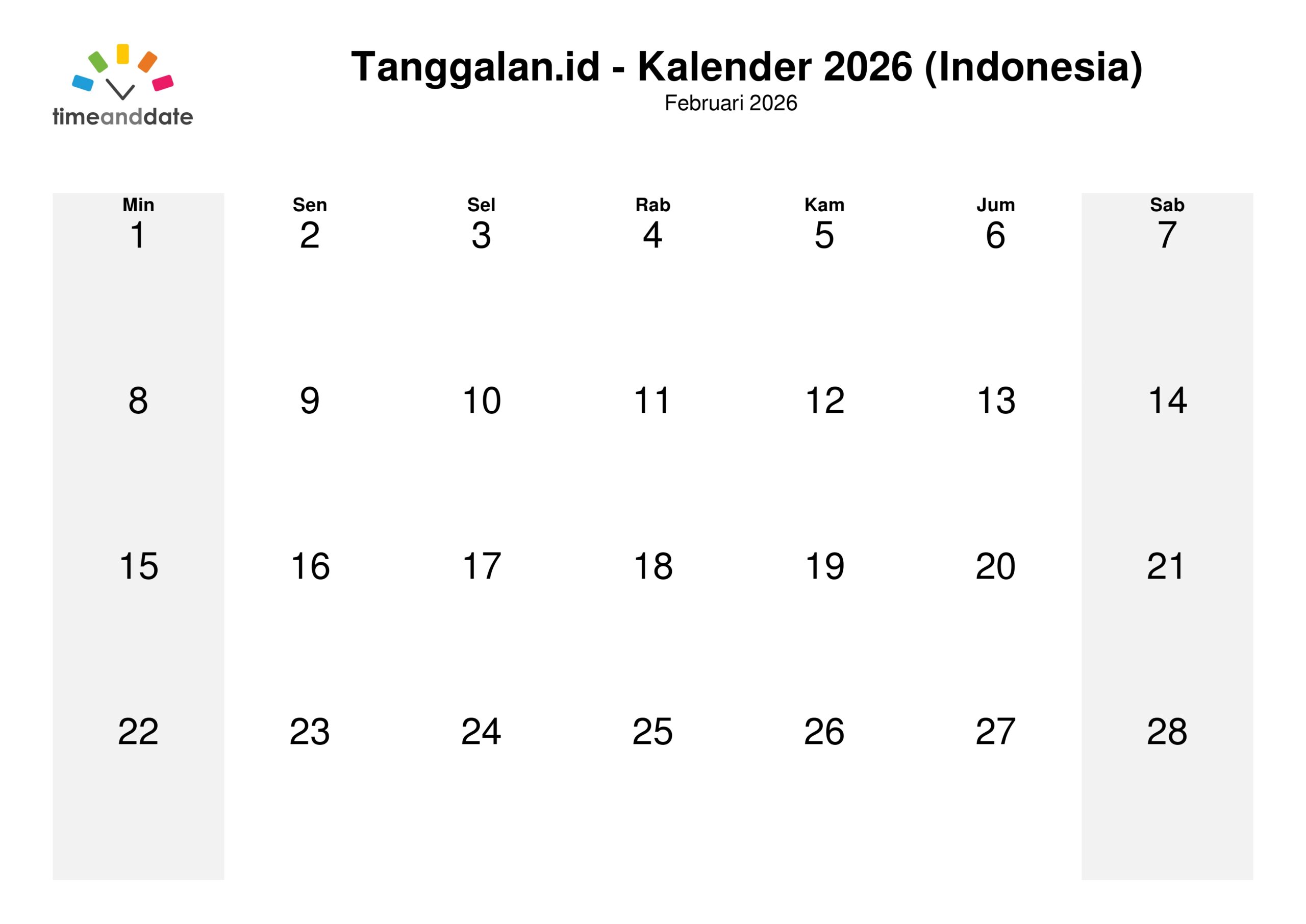 Unduh Kalender Februari 2026 Tanpa Hari Libur